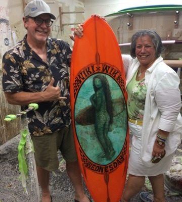 The Santa Cruz and Hawai’i surf connection was solidified again, recently. Fletch and JD, of the Santa Cruz Board Builders Guild and Jeffery Devine Rockets, who work out of Doug Haut’s surf shop on the Westside of Santa Cruz, conspired with Wiki Wiki Wednesday music program founder MB for a tremendous surprise.