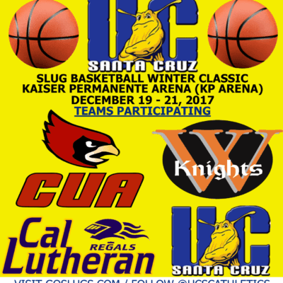 The UCSC Women’s Basketball team hosts the annual Slug Basketball Winter Classic @ Kaiser Permanente Arena (KP) in Downtown Santa Cruz on December 19th to December 21st! To get to the game,take any Santa Cruz Metro Bus to the Santa Cruz Metro Center, then walk two blocks to KP, (this is the last home tournament for year of 2017), For more information on the tournament, visit GoSlugs.com#GoSlugs